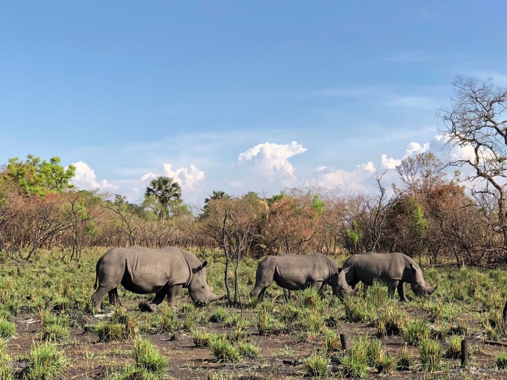 Walking into the bush to observe rhinos at Ziwa.