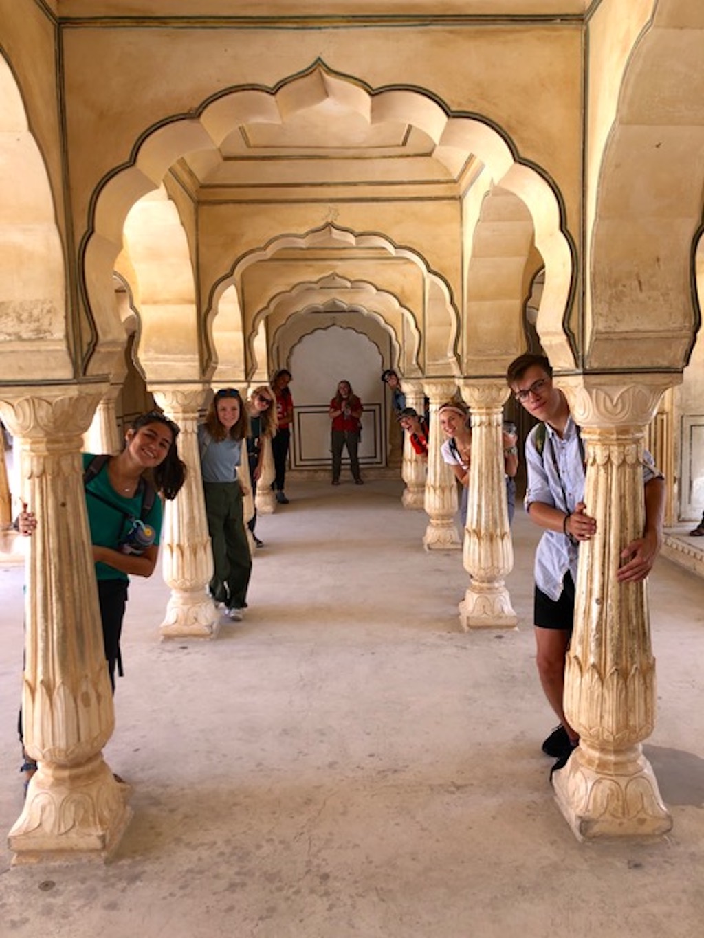 On our second day in Jaipur, we had breakfast with our host families before taking a driving tour of the Old City and then visiting the Amber Fort, a beautiful old palace that once belonged to the royal family. After lunch, we toured a handmade paper factory where we got to try making the paper, a pottery studio, and a block printing studio where we saw the workers individually stamping each textile.