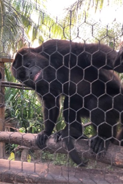 Every morning starts before 6 o’clock, grabbing a cup of green tea on my way to watch the sunrise and manatees in the lagoon. Then our first fruit chop begins and I get to serve it up to the seven Howler Monkeys I take care of. They receive browse and protein powder milk four times a day and fruit three times a day.