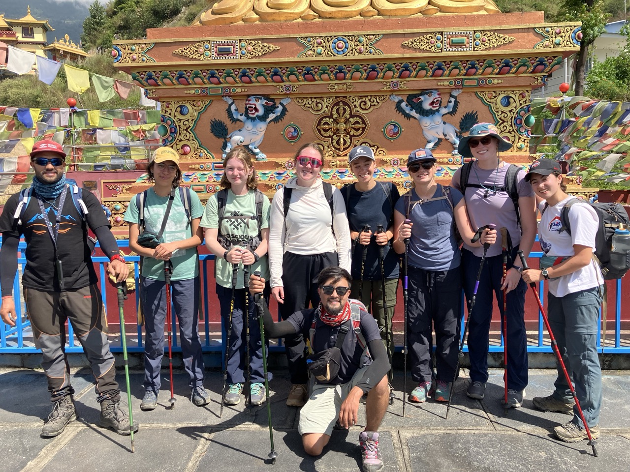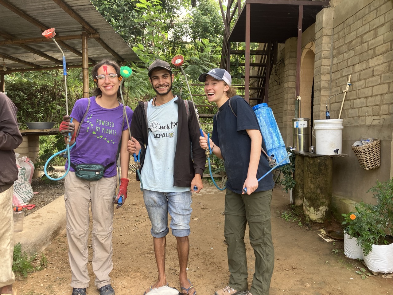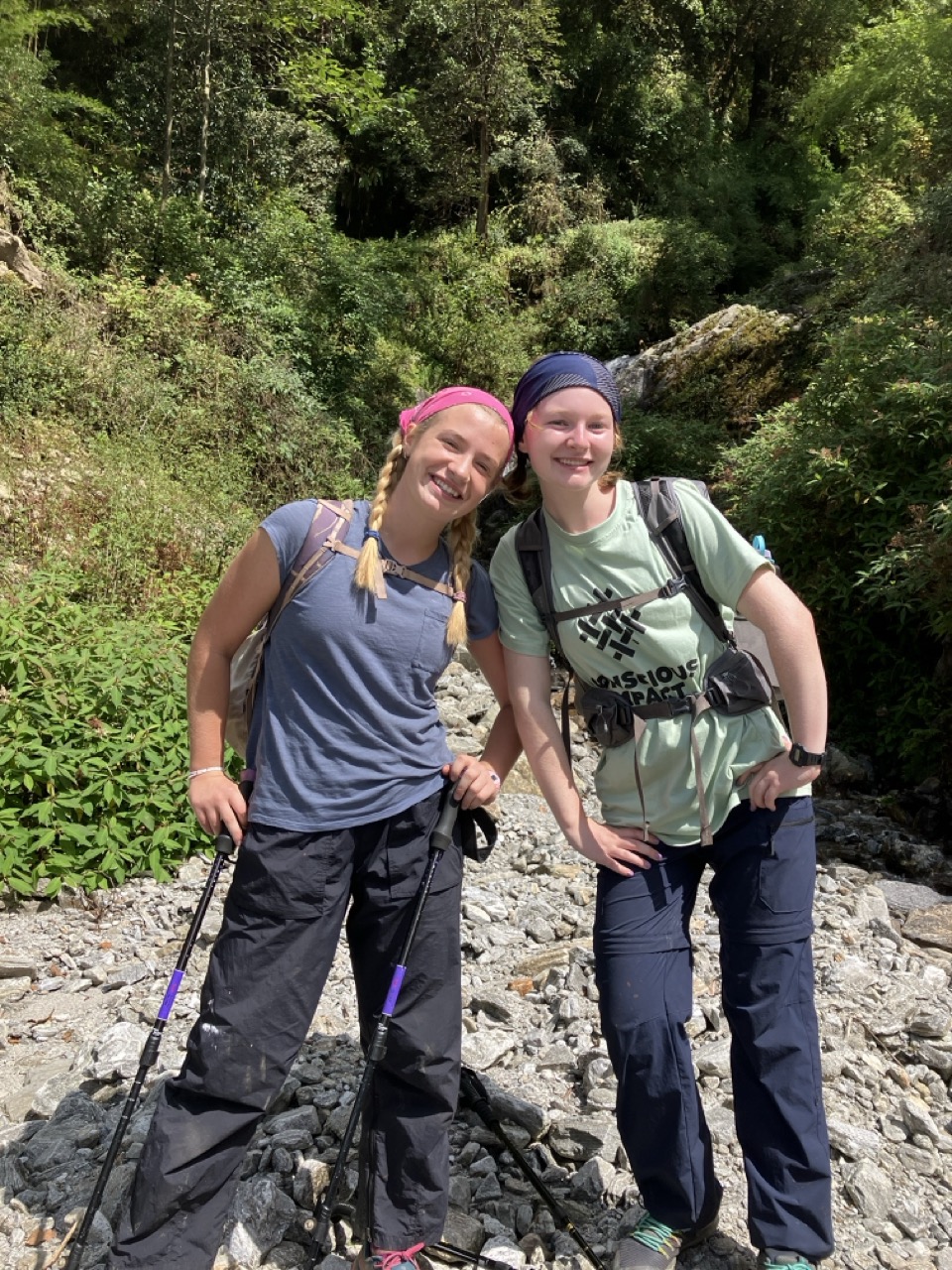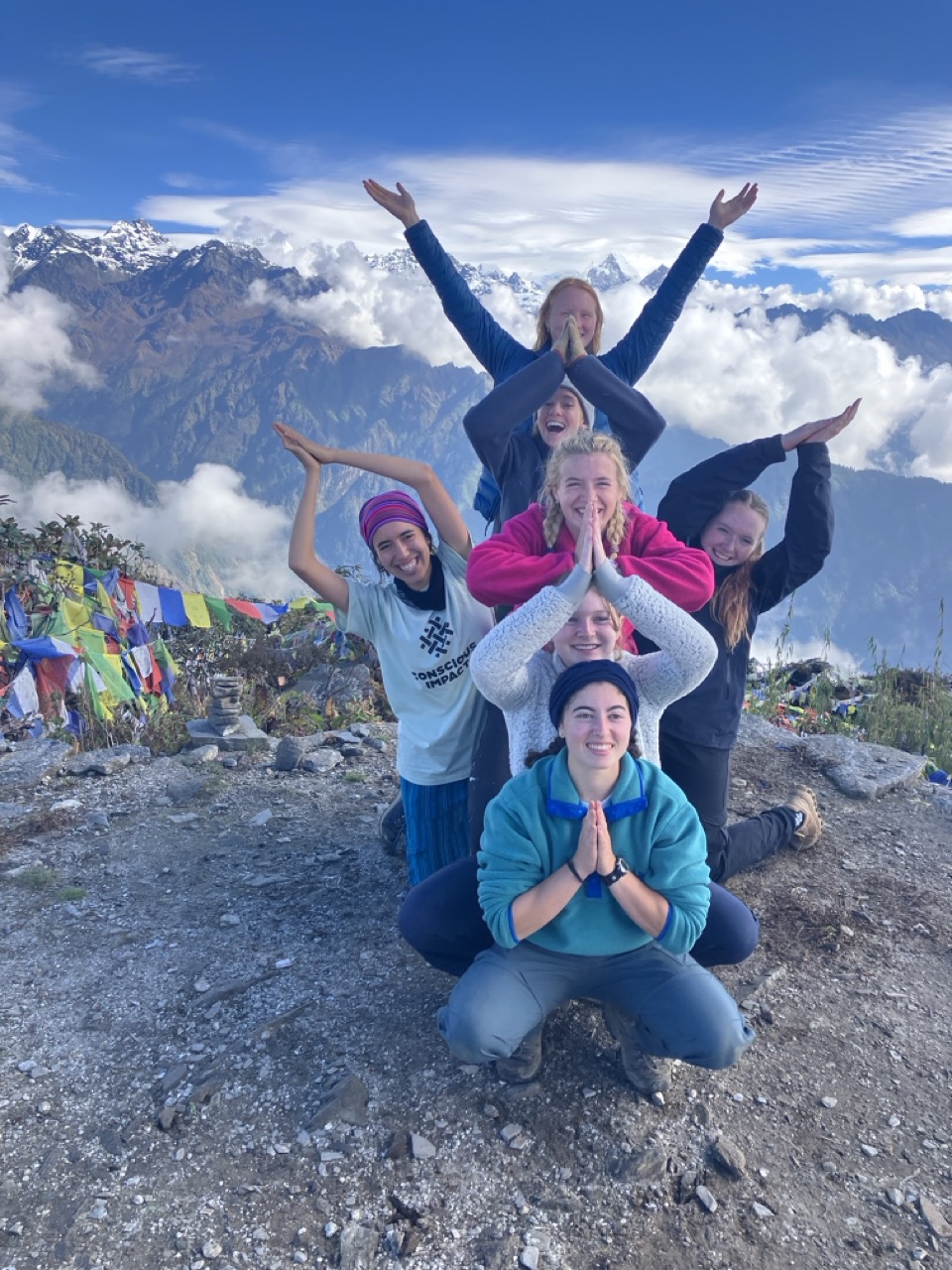 Last week, after saying goodbye to our friends from Conscious Impact, we departed on a three-hour jeep ride with our guides, Suvash and Sandesh, to the beginning of our trek. After a classic lunch of dal bhat and HUGE cucumbers, we embarked on our journey. The next five hours were spent questioning our life choices as we walked countless stairs up the mountain. Luckily, as the best leaders ever, we had stocked up on an abundance of cookies and apples. Unfortunately, Ava (the token celiac of the group) had eaten her apple two minutes after lunch so I (Sarah) had to give her mine. #leadermoment #instantregret. Eventually, we reached our destination, chowed down, and enjoyed the first hot showers we had had in weeks.