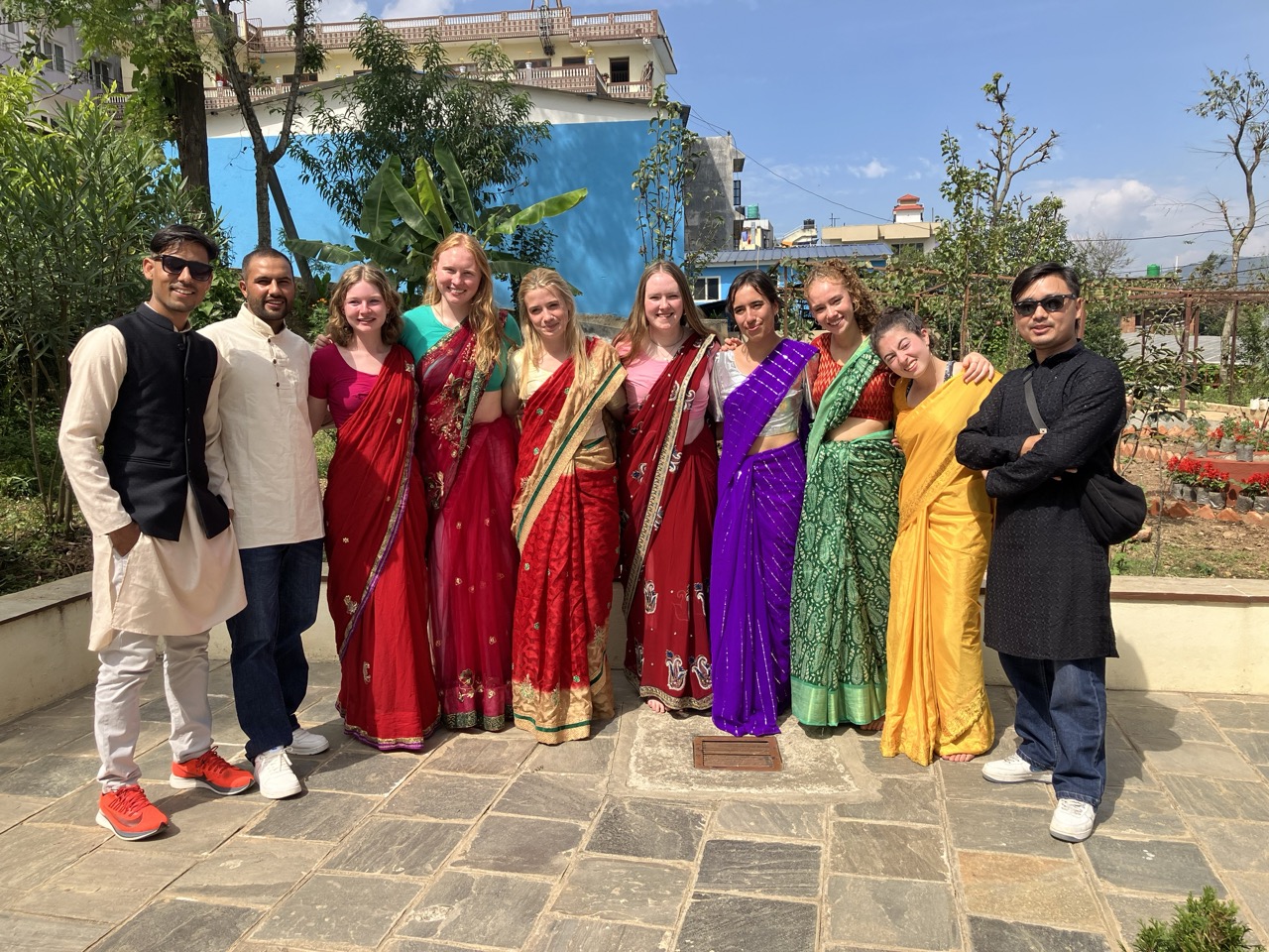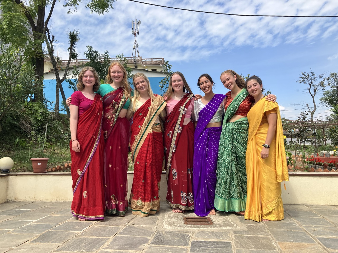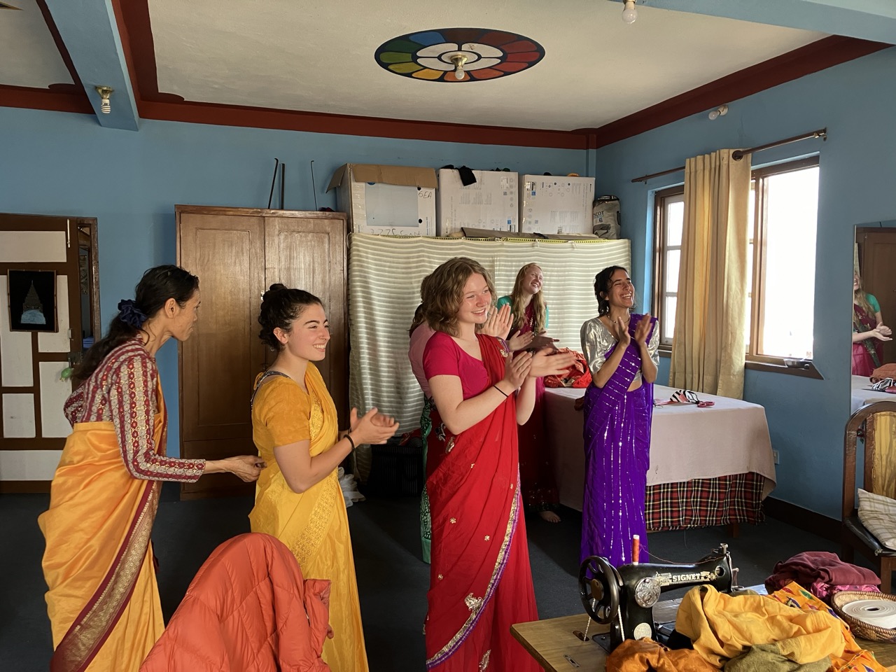 One of our favorite moments of the week was our first full day back at the ashram. We were lucky to be there during Dashain, a festival that celebrates good prevailing over evil. The day started with everyone getting dressed up in sarees. The women from the ashram kindly picked out the colors and helped dress us. Everyone looked so beautiful and it was a great start to a fun day.