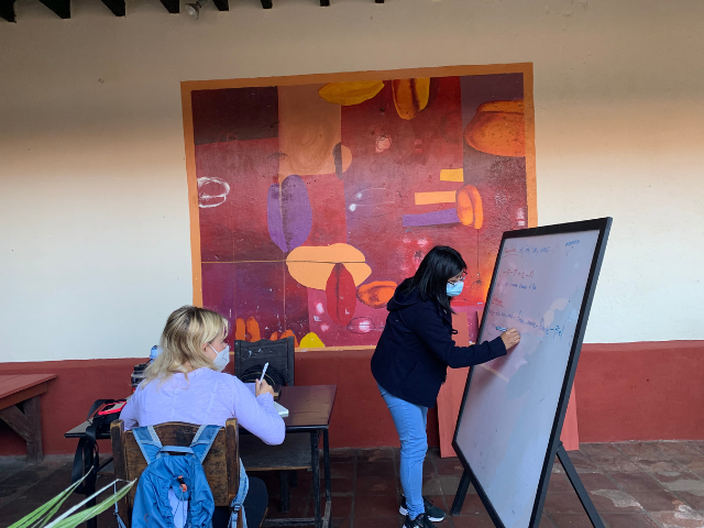 After our new friend Chris, the student coordinator at PLQ, gave us an orientation on Guatemalan history, the history of PLQ and most relevantly, the current political situation in Guatemala, we got our first taste of our highly intensive daily Spanish immersion. We spent 5 hours every day, Monday through Thursday, conjugating, learning vocabulary, and eating delicious snacks (yum! 😋). When we weren’t taking classes, we got to do many different activities, such as salsa classes (we’re all experts now), lectures, and excursions outside of town.