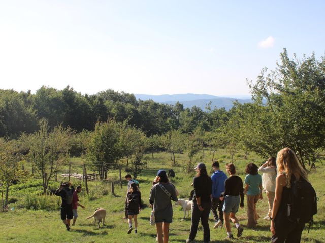 Ciao! The Terra 23 group has been whisked away to the Italian countryside at the beautiful property of Panta Rei in Umbria. We’ve been knee-deep in orientation activities- fun games, learning about tools to build a healthy community, getting to know each other, and immersing ourselves in Italian language and culture. We have been spending time with Tom and Mauro from Panta Rei, running around the property for a scavenger hunt, learning about mushrooms, and gaining insight to the sustainable designs of the property. The farm dogs Fred, Muschio, and Nia have been a huge hit and are receiving many pets.