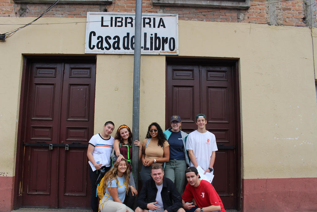 A group in front of the libreria in Xela during the scavenger hunt.