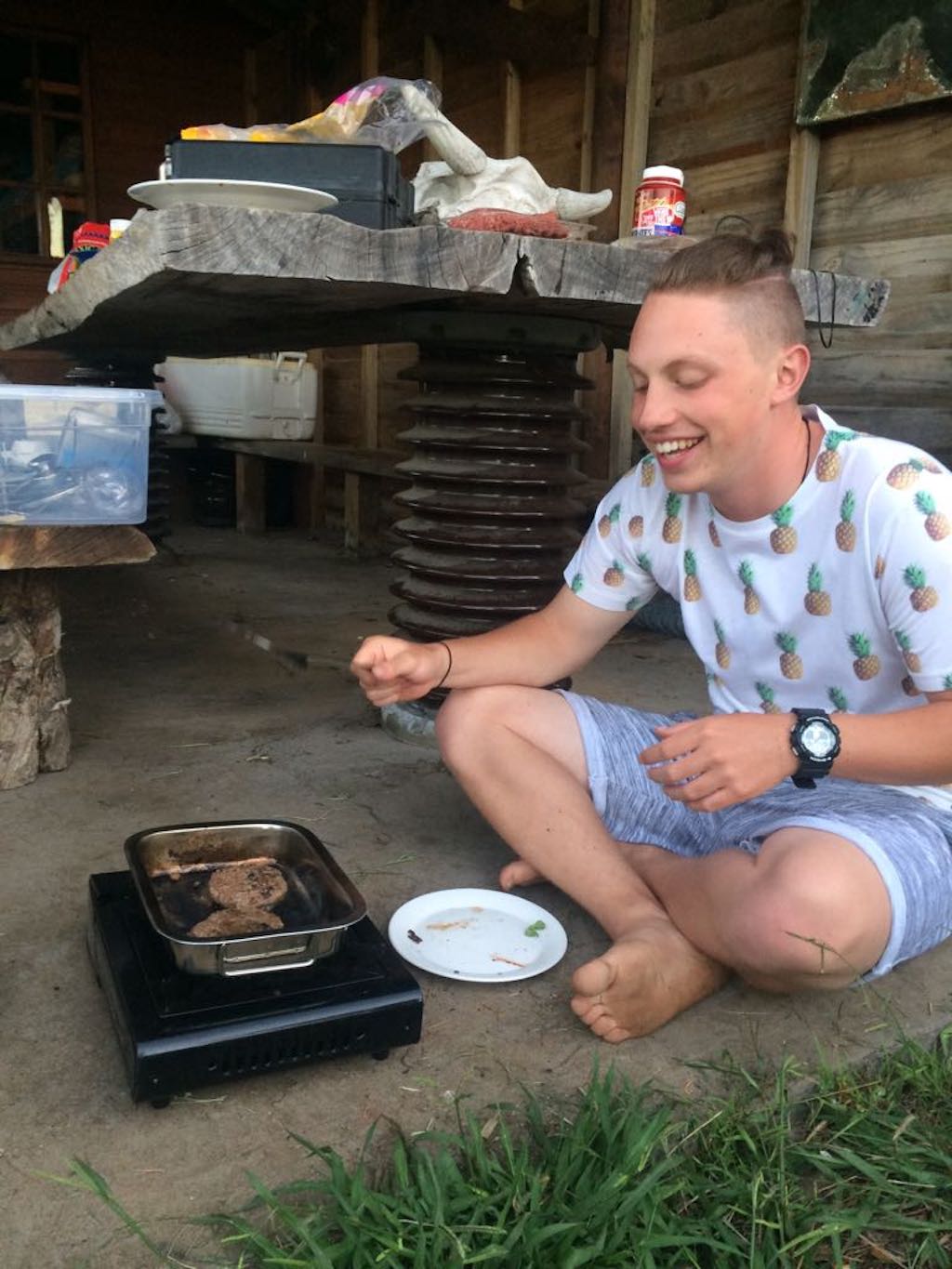 Wes working the grill at our spot just outside Raglan.