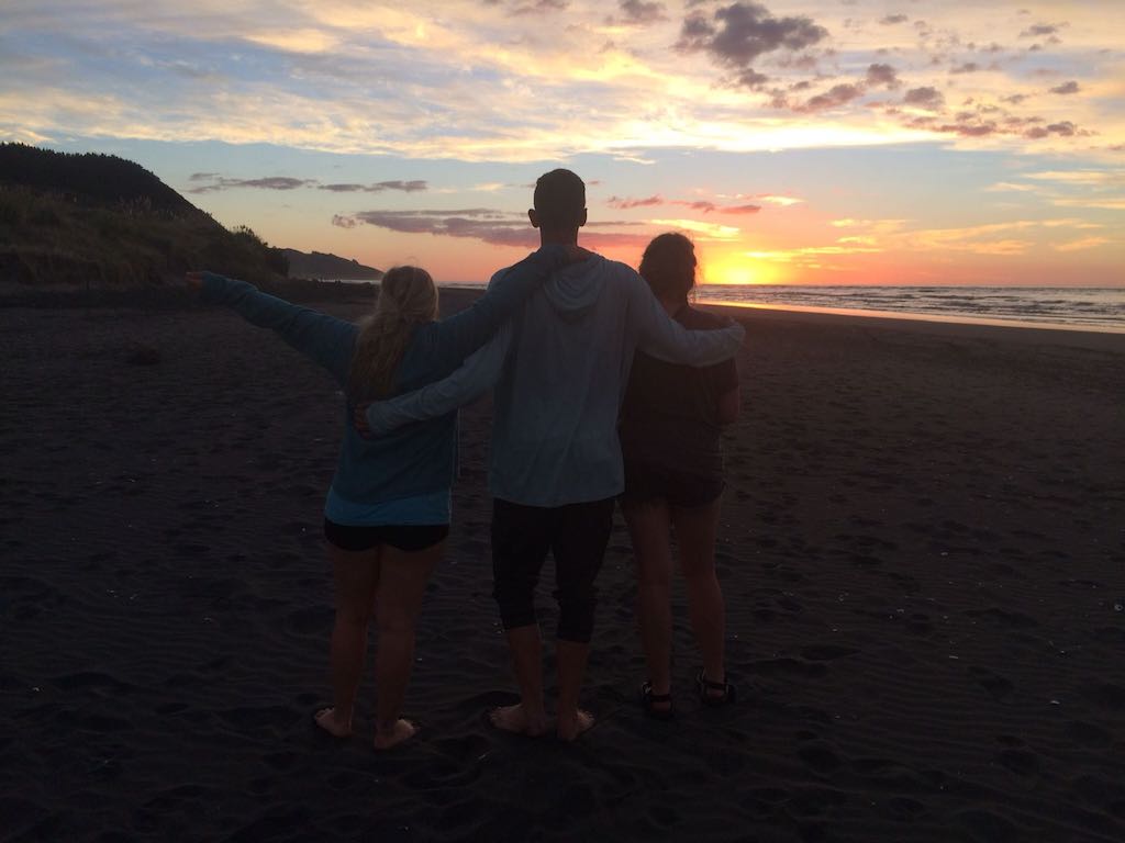 First evening walking the beach in Ki Whaingaroa at sunset.