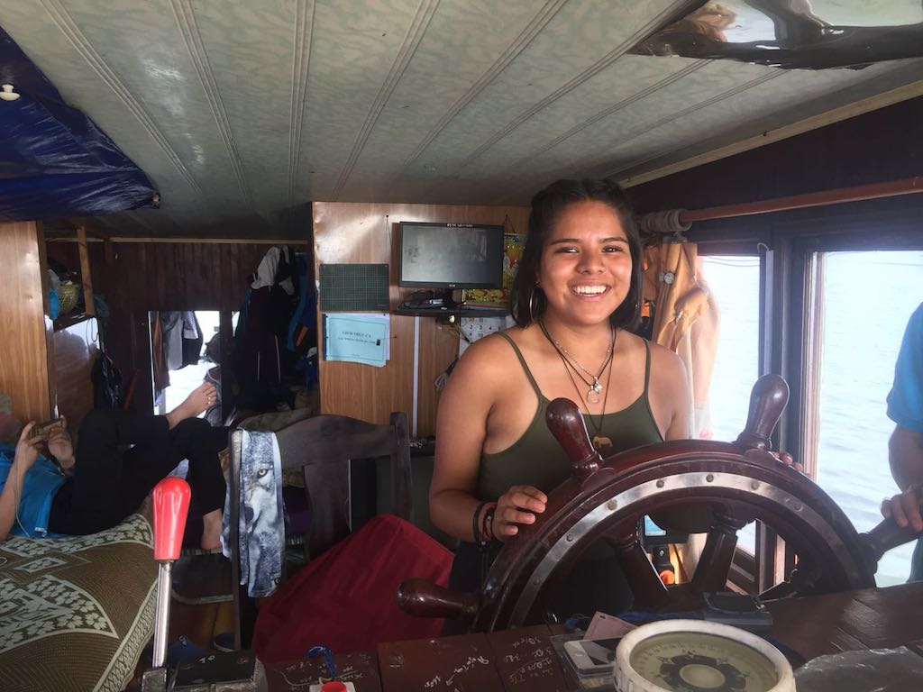 Captaining the ship in Ha Long Bay, Vietnam.