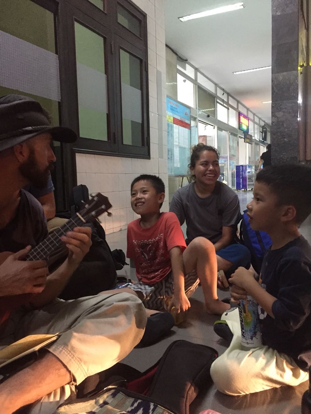 Waiting for the bus in Vietnam.