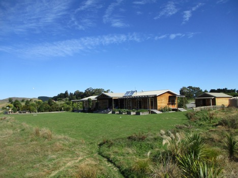 Waking up the next morning was tough, we had to catch a 6 o’clock shuttle to the bus station where we took a 5 hour bus ride to Waipukurau where we met our contacts Greg and Rachel Hart who are owners of the amazing farm we stayed at this week. When we arrived to the farm all of us were amazed at its beauty and pristine. We were met with gorgeous views of their own personal lake (horseshoe lake), as well has the amazing eco lodge we were staying in. The lodge was connected to a natural water system connected to a worm composting system and all the water in the house was reused rain water. The lodge was just the start to all the renewable energy and sustainability this farm had to offer. That evening Rachel made a delicious dinner of farm grown burgers and sausages, potatoes, kale salad, coleslaw and veggie burgers made from scratch, a wonderful way to kick off our week here at this epic farm.