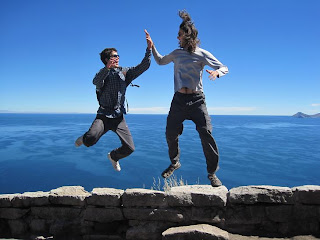 Upon our arrival, Jordi was not doing so hot, slowly fading into Diego´s shadow. We lay him in bed (hostal Austria, beds suck) equipped with his sleeping bag and some Cipro and hoped for the best… Long story short, Jordi could walk in the morning (progress) as we ventured out into the streets of La Paz, trying to figure out what we were going to do with our time here. No Amazon trip (shitty) , but we looked forward to the Salt flats. Instead, we returned back to Lago Tits (thanks Jordan and Zoe), taking a two day trip out to the cozy, yet gringo infested town of Copacabana. We ate some food (Alejandro´s efforts would make Patricio and Andres proud), climbed some rocks (sketchy), speed dated La Isla del Sol (seriously for 1.5 hours, but still way cool), and found ourselves back in La Paz, where we are now. We spent the night last night enjoying German cuisine, and slept bellies up. Today, we are checking out La Paz before catching another night bus to Uyuni at 7 tonight. SALT FLATS HERE WE COME! Oh yea, Claire is having a good time too.